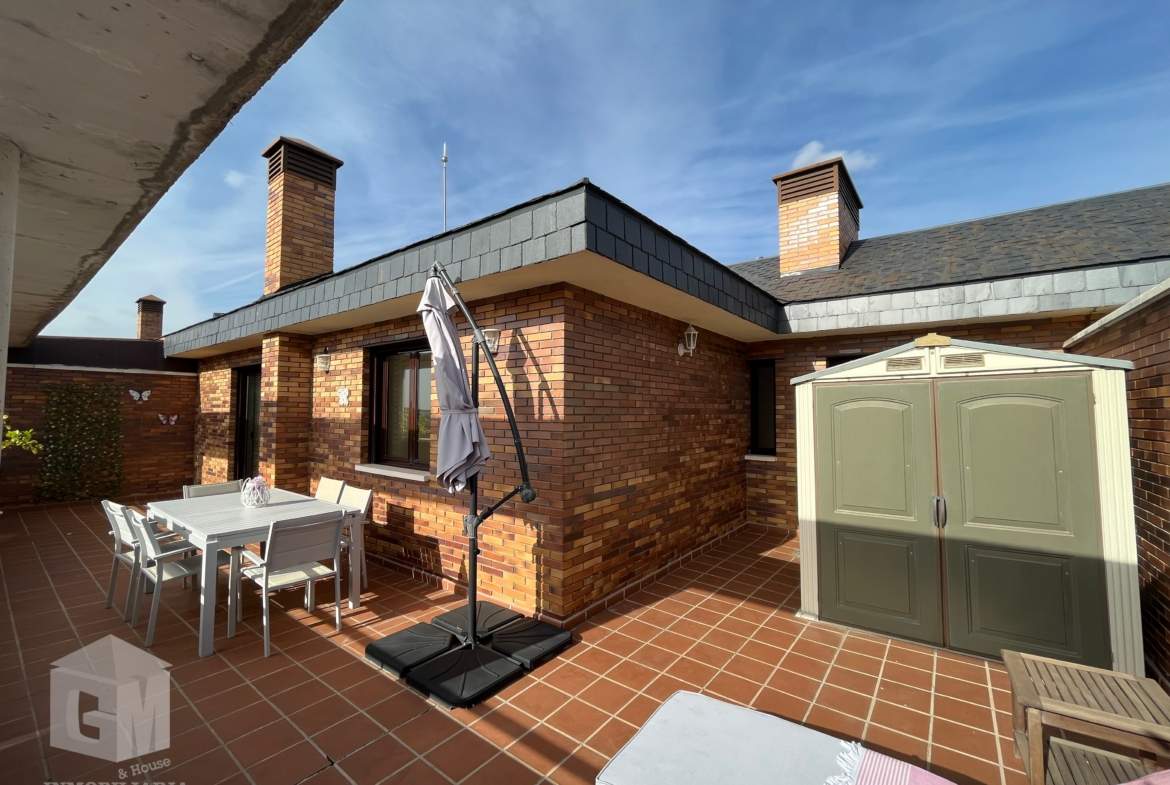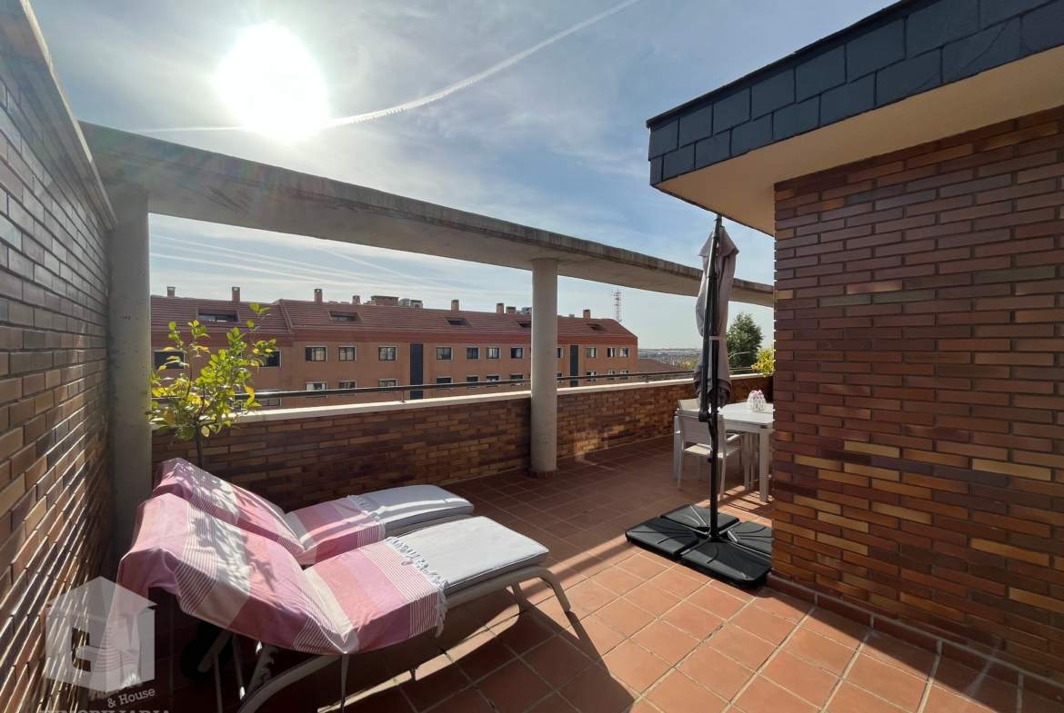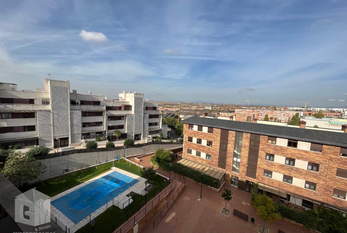 La vivienda de 110m mas la imponente terraza orientación sureste de 60m, tiene la gran ventaja de encontrarse toda en una sola planta, sin prácticamente impedimentos de acceso a la terraza desde el salón, y teniendo ventanas en todas y cada una de las estancias. Tiene vistas por un lado a la sierra madrileña y zona comunitaria, y por el otro a la avenida y zona sur de Arroyomolinos.
