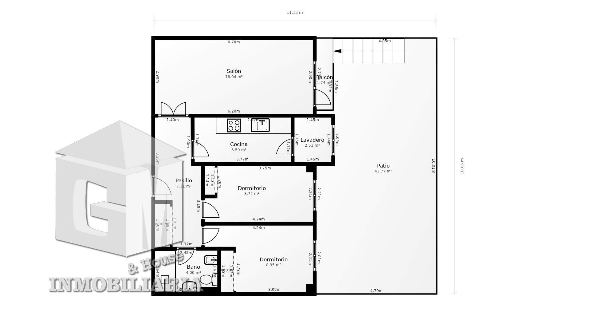 Tiene 78m y un maravilloso jardin solado con vegetación y preciosas plantas de 43m, ideal para disfrutar en la época de primavera, verano y otoño, ya que tiene pergola.