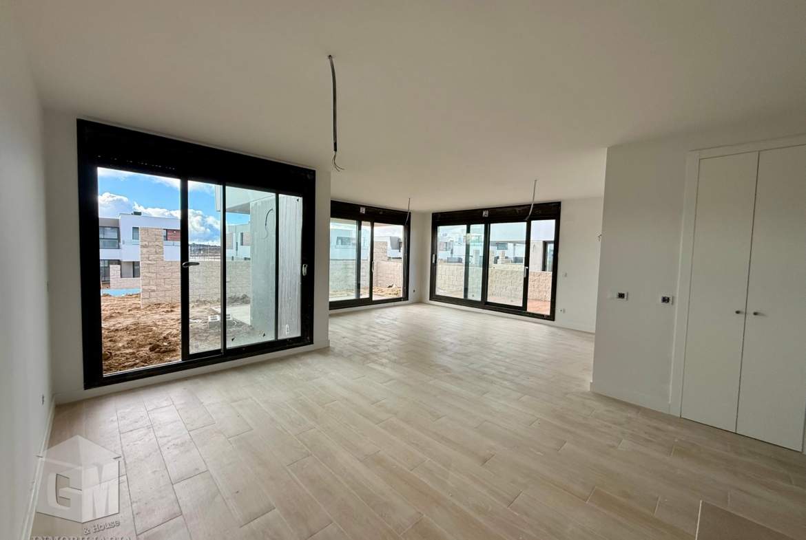 Amplia cocina semi abierta de 17m amueblada por PORCELANOSA e incluyendo esta unidad con 2 de las mejoras opcionales ofrecidas en obra, que hacen que tenga el mayor y mejor equipamiento posible. Habitación o despacho de 10m en planta baja, con armario empotrado, aseo con plato de ducha y ventana y salón de 39m componen la planta baja. Amplios ventanales abatibles y oscilobatientes en toda la casa, o bien correderas en las salidas a porche o terrazas. Desde el salón comedor tienes 3 accesos al porche solado y jardin, para que el mismo sea una continuación de la propia vivienda y zona social.
