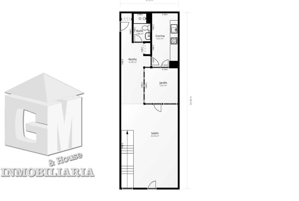 En la planta calle, que es prácticamente diáfana, hay un armario gabanero en el distribuidor/recibidor de 12m, que da acceso tanto al baño como a la cocina de 10m.
