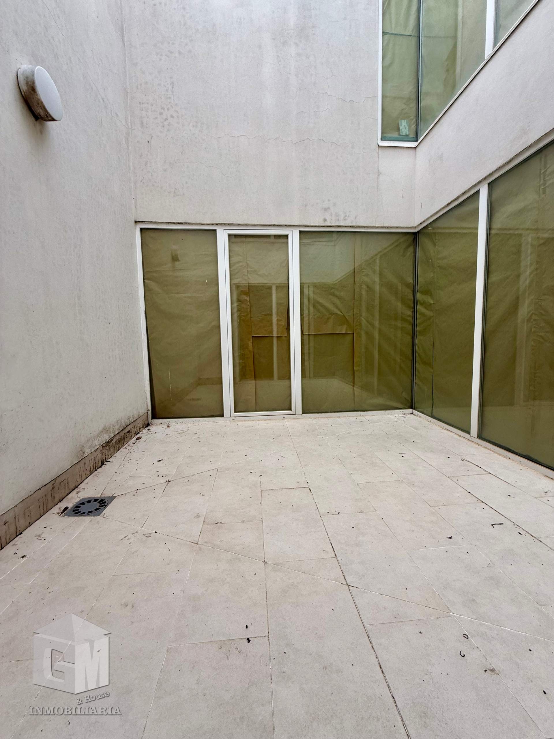 El salón es abierto completamente y toda la planta se comunica a la zona de cristaleras que tiene el patio solado que da servicio tanto a la cocina en caso de usarse como tendedero, como al salón en caso de querer tener una terraza interior para poder desayunar, comer o cenar sin que nada ni nadie moleste. Destacar los escalones encastrados y volados de la escalera, que son una autentica maravilla.