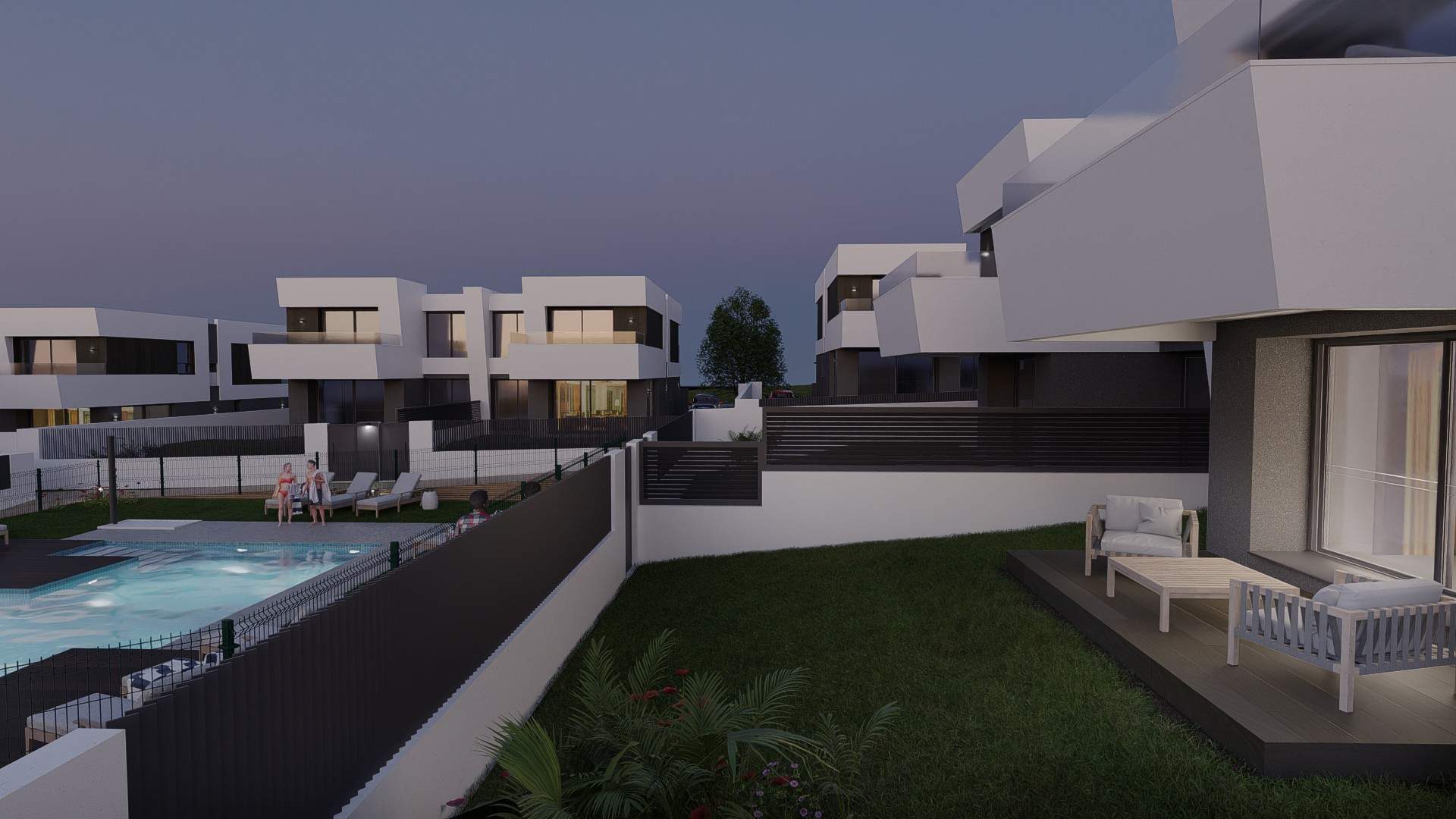 Presentamos el Residencial Lago de Las Hadas II, ubicado en la manzana 26.2 del Monte de la Villa, cerca de los dos accesos de coche y cerca de parques, comercios y vía de autobús. Un espectacular residencial compuesto por 17 chalets pareados con parcelas desde 328m en total de terreno y 167m libres de jardín aparte de 2 porches solados. Las viviendas tienen 211m en total distribuidos en 2 amplias plantas, cuentan con cocina semi abierta de 16m amueblada y equipada, salón de 39m con 3 amplios ventanales con acceso por los 3 al jardín, habitación o despacho de 10m en la planta calle y aseo con plato de ducha y ventana.